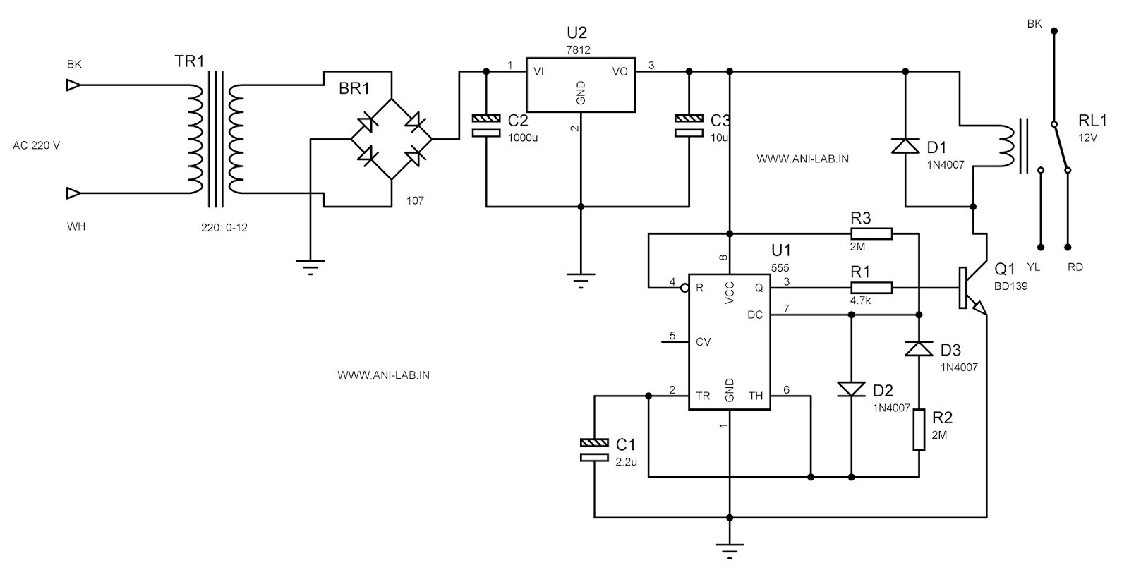 To give power to this circuit, we have used the linear power source, which is based on transformer and regulator 7812. From this, the circuit will continue to get 12 volts.